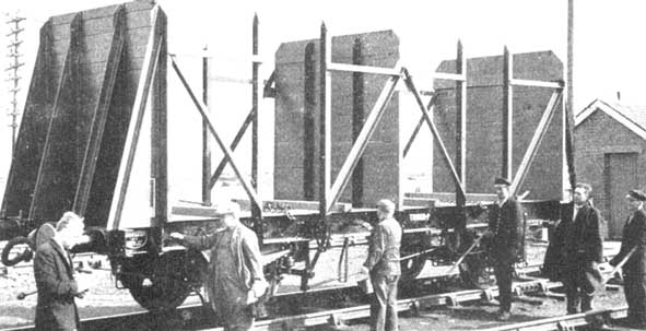 22-ton timber wagon. - Wagon is of steel construction and has wooden floor. It is divided into two equal lengths. Ends and center partition securely braced to underframe solebars; this prevents logs from slipping sideways. Two openings 3 ft 2 in (96.5 cm) wide provided in center of each loading section to accommodate timber handling equipment.