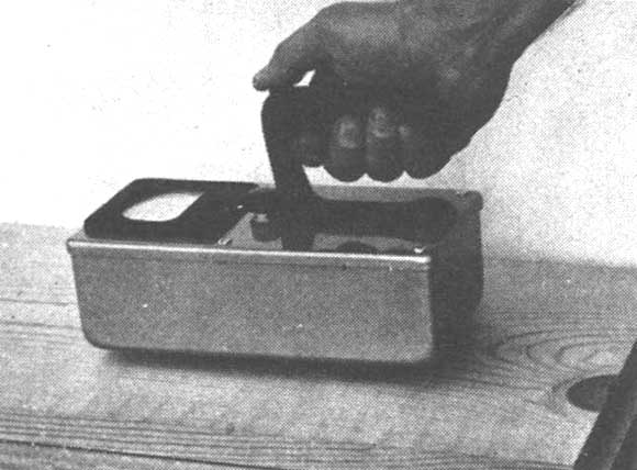 Moisture detector. - Tests moisture content lumber and wood products. Utilizes rechargeable battery which can be partially recharged in one hour and completely recharged in 24 hours. Battery lasts lifetime of the instrument. Fully calibrated for hard and soft woods in range from 0-25 percent. Completely transistorized circuit ensures accurate readings down to penetration depth of 1 in (2.54 cm).