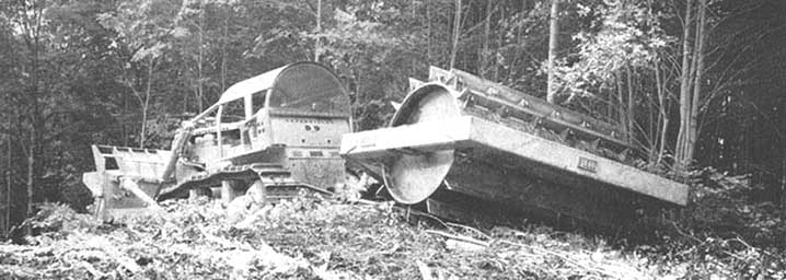 25-ton chopper. - Brush, limbs, even trees more than a foot in diameter are slashed into chips and slivers by high tensile blades backed by 50,000 (22,650 kg) weight. Blades are kept to knife-sharpness by grinding to assure maximum kill. Chips are pressed into ground to rot.