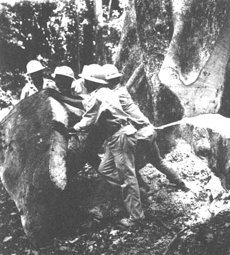 "I visited all stations and the logging camps on the main islands by 4-seater plane, sea-going launch and jeep. The total forest area is estimated roughly at about 2.6 million hectares, most of which is located on the two main islands of New Georgia and Santa Ysabel. The present forest area under commercial exploitation is about 76,000 hectares, all of which is on these two islands. Three major logging companies are now established. So far, all licenses have been issued for a 20 years' period. Logging operations are highly mechanized in view of the shortage of manpower.