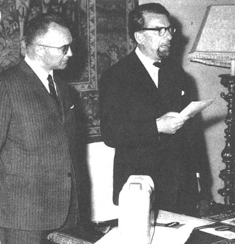 · The new forestry training and demonstration center in Bangui was recently inaugurated by the Minister of Development at a ceremony which was attended by Dr. B.R. Sen, Director-General of FAO, as well as by members of the Government and Diplomatic Corps and many other local and foreign guests.