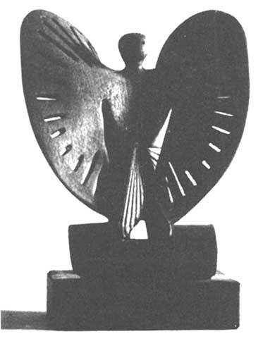 United Kingdom. A professional forester with the Forestry Commission in Warwickshire, W. J. Wilson, is a sculptor in wood in his spare time. His knowledge of the material and his ability to bring out its qualities are evident in the two examples shown here. "The Wood Chopper" as of beech and depicts the movement of an ax in chopping a log in two, "The Dancers" of acacia is on loan to FAO.