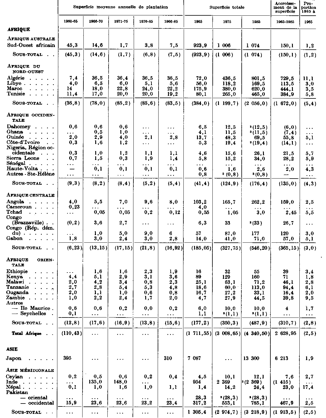 Pour faire face à cet accroissement, il faudrait que les plantations des pays n'ayant pas encore présenté de rapport produisent chaque année environ trois fois plus que colles qui sont prévues dans les programmes communiqués. On peut sérieusement mettre on doute cette éventualité. Bien évidemment, il serait nécessaire de disposer de plus de renseignements sur la question.