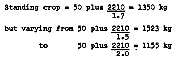 From these data it would appear that relatively reliable estimates of the standing crop or yield may be made from the equation: