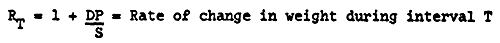 | R | = | le taux d'accroissement en poids au cours de l'intervalle T, et |
