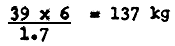 If we are attempting to produce 2,000 kg of catfish, the remainder of the time we cannot feed more than 39 kg of feed per day. If we feed six days per week, the increase in weight of catfish per week is: