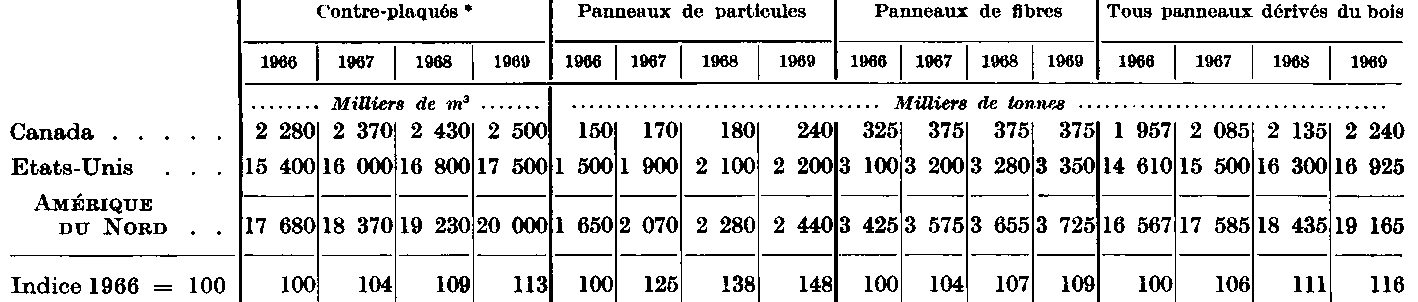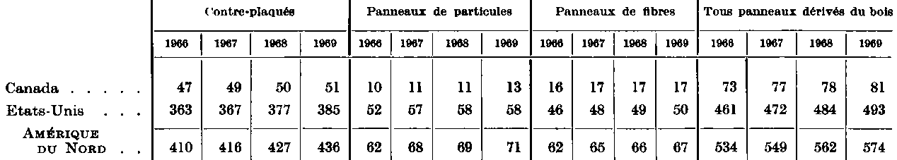 TABLEAU. 26 - MONDE: PANNEAUX DÉRIVÉS DU BOIS: CAPACITÉ DE PRODUCTION DANS LES SIX PRINCIPAUX PAYS PRODUCTEURS, 1966-69