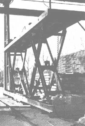 Mesas elevadoras hidráulicas. - Estas mesas varían desde unidades portátiles de 1/4 tonelada (250 kg.) a unidades estáticas de 50 toneladas (50000 kg.) para la carga de camiones alimentación de máquinas, apilado, cadenas de producción, manejo de mercancías, eta. Pueden fabricarse grandes plataformas para ayudar en la operación de apilado de piezas de madera.