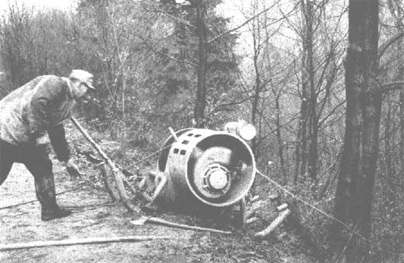 Torno para la explotación forestal. - Puede equipararse con un motor Rotax de 500 cc que desarrolla una potencia de 16 cv a 4000 rpm y tiene una caja de cambios de 2 velocidades, que pueden ser dos hacia adelante o una hacia adelante y otra hacia atrás. El torno va montado sobre rodillos, con el fin de poder ser autotransportado a campo abierto mediante un cable de arrastre.