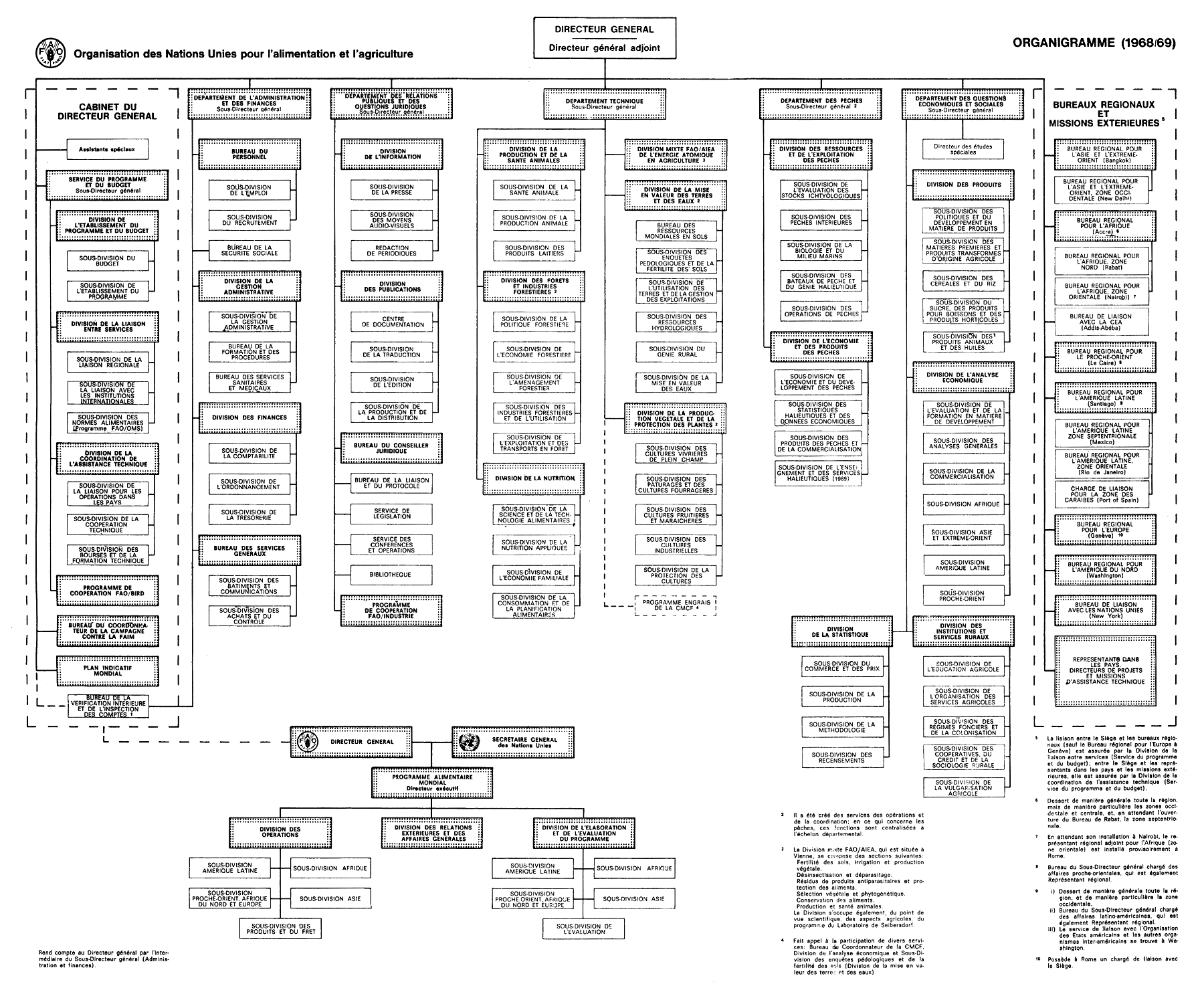 | 7. | Créer un Département du développement, correspondant à l'ancien Service du programme et du budget et comprenant une Division des services régionaux, un Centre d'investissement, le Programme de coopération FAO/Industrie, une Division de la liaison avec les institutions internationales, et la Division de l'établissement du programme et du budget. | 42 – 59 |
