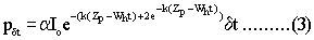 k is the extinction coefficient (the value k = 0.1 has been used, ignoring its possible increase with increasing production);