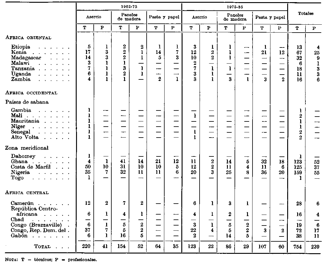 Quizá es también necesario destacar la conveniencia de separar las necesidades de personal industrial de las de la ordenación de los bosques productores. El tipo de capacitación requerido por las industrias forestales es básicamente diferente del que necesita la silvicultura y, en opinión del autor, no puede ser proporcionado por los forestales. Este aspecto se ha descuidado en el pasado (como lo testimonia el lamentable estado actual de las industrias forestales) y en el futuro corremos el peligro de enfocarlo equivocadamente. Una reciente nota de la Secretaría de la FAO (FAO, 1968), aunque calcula separadamente las necesidades de personal capacitado en silvicultura y en industrias forestales en Africa, incluye a ambas bajo el encabezamiento común de «educación forestal». Es loable que el forestal reconozca las necesidades de capacitación industrial, pero debe guardarse de intentar proporcionarla en el contexto de la educación silvícola.