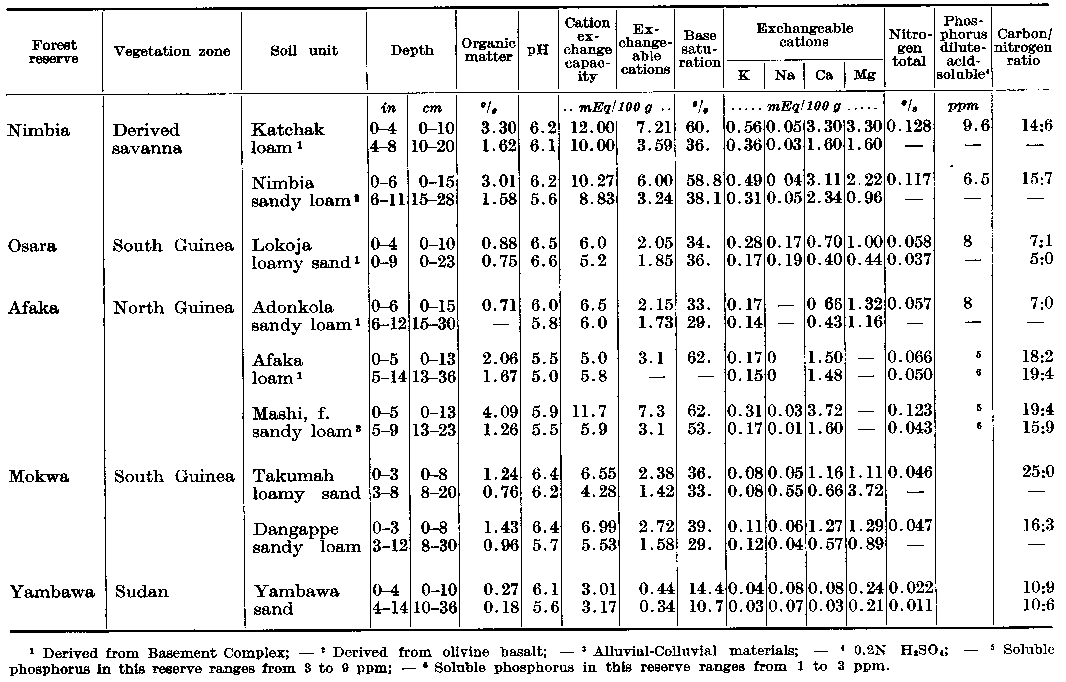 TABLE 7. - CHEMICAL CHARACTERISTICS OF SELECTED SOILS FROM SAVANNA FOREST RESERVES, NIGERIA