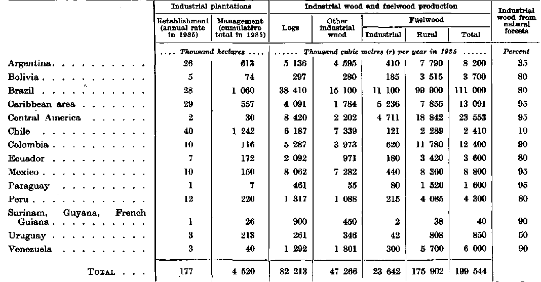 TABLE 1B. - BASIC DATA FOR ASSESSMENT OF TRAINED MANPOWER REQUIREMENTS FOR FOREST INDUSTRY IN LATIN AMERICA BY 1985