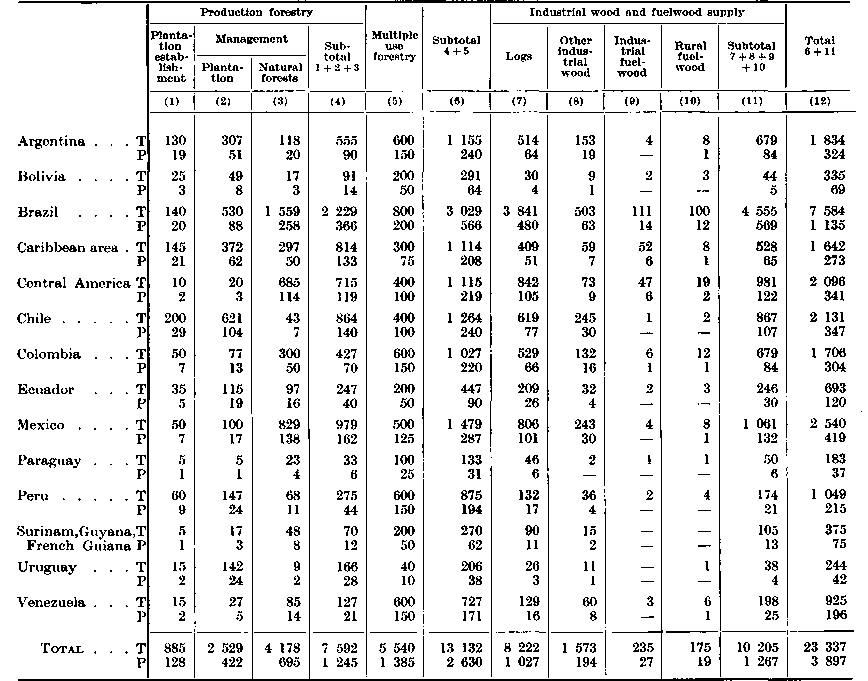 The contribution of forestry and forest industries to economic development will attain the levels advocated by IWP only if each country builds up an adequate professional and technical forestry and forest industries personnel to plan, control, and effectively implement the developments envisaged, especially with regard to new afforestation and reforestation, increased production of forest raw material and expansion of forest industry. An assessment of such personnel requirements is attempted on the basis of the relevant data from IWP's country accounts which are shown in Table 1A and Table 1B for forestry and forest industry respectively.