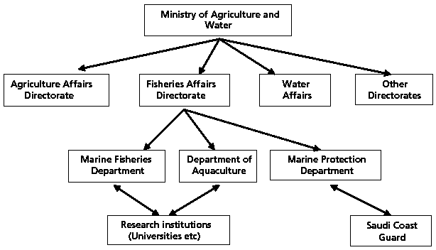 The national authority with responsibility for fisheries management in Saudi Arabia is the Ministry of Agriculture and Water, which was provided with the authority to administer and manage fisheries in 1988. It co-operates with other Ministries in achieving fisheries management outcomes, most commonly by the formation of temporary inter-Ministerial committees to address specific issues. The Fisheries Affairs Directorate within the Ministry is responsible not only for marine fisheries management but also for aquaculture and marine protection.