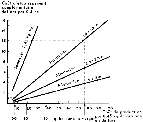 FIGURE 27. - Coût de production des semences, à l'exclusion des frais de récolte et d'extraction, dans les vergers à graines de clones de Pinus taeda dans des conditions moyennes.