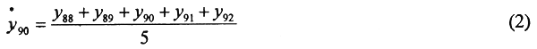 With data to year 1992 a base-year value for y is given as a five-year average centered at year 1990: