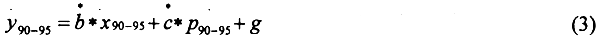 where x90–95 and p90–95 denote corresponding annual rates of growth for the end-use indicator or GDP and price, respectively. If the model is static, i e d = 0, b and c are replaced by b and c, respectively. If, furthermore, price is expected to remain constant over the projection period, which is the case in the base scenario, the factor e* p90–95 will be canceled.