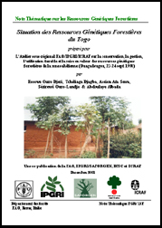 Ouro Djeri E., Djagba T., Sewa A. A., Ouro-Landjo S. & Albada A. 2001. Situation des ressources génétiques forestières du Togo. Atelier sous-régional FAO/IPGRI/ICRAF sur la conservation, la gestion, lutilisation durable et la mise en valeur des ressources génétiques forestières de la zone sahélienne (Ouagadougou, 22-24 sept. 1998). Note thématique sur les ressources génétiques forestières. Document FGR/13F. Département des forêts, FAO, Rome, Italie.