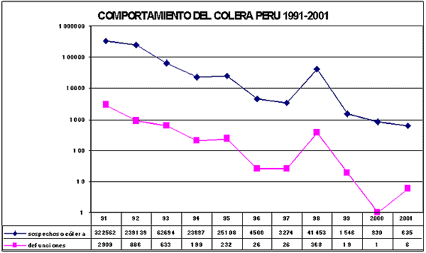 El año 1991 el país fue azotado por la epidemia de cólera, llegando a 322,562 sospechosos de cólera con un total de 2909 defunciones.