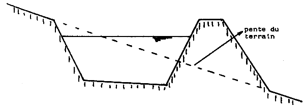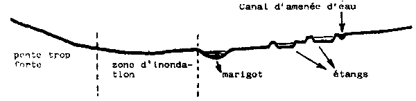 On a déjà vu qu'on ne va pas construire un étang là oùla pente est très forte parce que la digue en aval devrait être très grande et donc coûteuse pour un étang de superficie réduite. (Pour chaque travail on compare l'effort nécessaire avec le bénéfice qu'on peut en tirer).