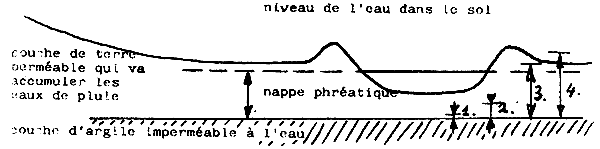Niveau phréatique pendant une saison de pluie exceptionnelle (Le terrain devient marécageux)