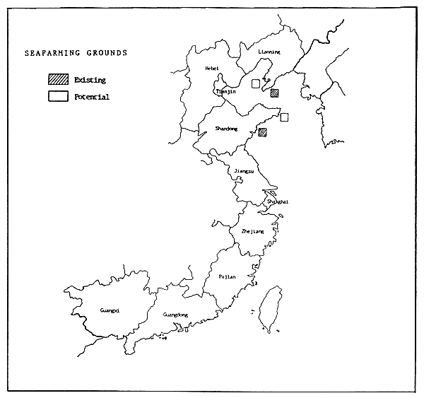 Scallop seafarming started almost 10 years ago following the success in artificial rearing of spat in controlled conditions. At present, there are about 3,500 hectares of culture area and, in 1988 the production was 121,991 MT, a considerable increase over the previous years. There are two species mainly cultured in China: Chlamys farreri and the bay scallop Argopecten irradians. Scallops are mainly cultivated in the northern provinces of China, particularly in Liaoning and Shandong. On the contrary, scallop culture in the southern provinces has not yet developed, possibly due to unfavorable environmental conditions.