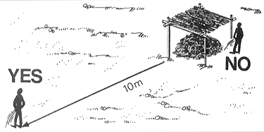425. Never relieve yourself on or near your compost pile. Use your latrine, or relieve yourself at least 10 metres away.