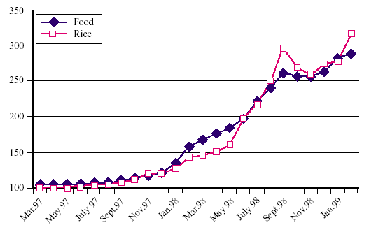 Indonesia - Rice and Food Price Index(March 1997 = 100)
