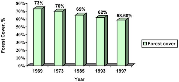 With the imposition of the logging ban in 1989, the main objective of forest management has changed from production to conservation. The government is concentrating more on forest rehabilitation, especially reforestation and biodiversity conservation. The areas reserved for conservation and the Protected Area System have increased steadily (Table 1). Law enforcement has been strengthened, and some people residing in the conservation forests have been resettled in buffer zones or other designated areas, although this strategy has resulted in a number of conflicts.