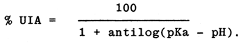 The amount of UIA at different levels of pH can be calculated from the dissociation constant (pKa) values for ammonia, (Smart, 1972) shown bellow: