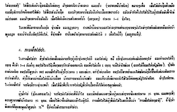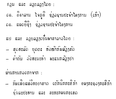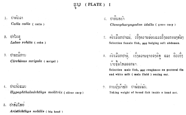 The Lao people like fish and are keenly interested in fish culture. There are innumerable ponds scattered all over the country. Among the good fishes already introduced in Lao PDR for culture, the important ones are the Asiatic carps namely, rohu (Labeo rohita), mrigal (Cirrhinus mrigala), catla (Catla catla), silver carp (Hypophthalmichthys molitrix), big head (Aristichthys nobilis), grass carp (Ctenopharyngodon idella). In addition to exotic carps, the indigenous Mekong carps namely, pa phone (Cirrhinus microlepis), pa phia (Morulius chrysophekadion), pa nok khao (Osteocheilus melanopleura) etc. have a good possibility of culture in ponds.