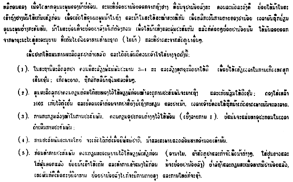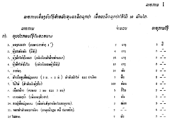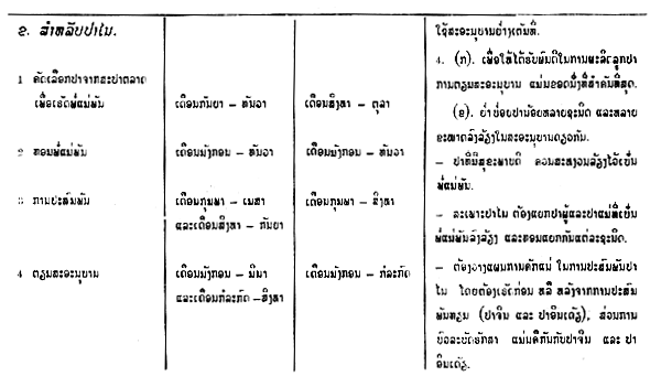 | Item of work | For warmer plains | For colder areas like Sam Neua, Xieng Khouang | Remarks. | ||