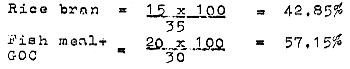 Other test diets were also formulated to determine if improvement in feed efficiency could be obtained by substituting groundnut oilcake with seasame oilcake (Table II), the latter being richer in methonine, the essential amino acid generally lacking in vegetable proteins but present at high level in fish meal. The possibility of substituting rice bran with salseed cake was also studied (Table-I).