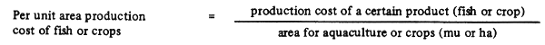 Per unit area, per unit product, and per unit output value cost accurately reflect farming consumption. They are important indicators in appraising the economic return of integrated fish farming: the lower the cost, the greater the economic return.
