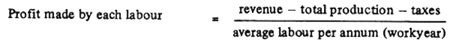 This formula can be applied to a farm, a certain trade, or a certain product. On a state-owned farm, the workforce is quite stable; on the collective or individual farms, there is a great variation in the workforce. In an actual appraisal, 300 work-days are generally considered as 1 workyear. This accurately reflects the new contribution to society by each laborer, excluding the effects of embodied labour on labour productivity. The higher the value of this indicator, the better the economic benefit.