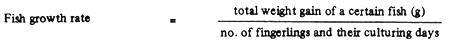 These formulae can be applied to yearling and 2-year-old fingerling ponds. To make a stocking plan or forecast yields, farmers should understand not only the relationships between items but also the interlocking part of different size in different stages and the general survival rate and the weight gain of fish in different sizes.