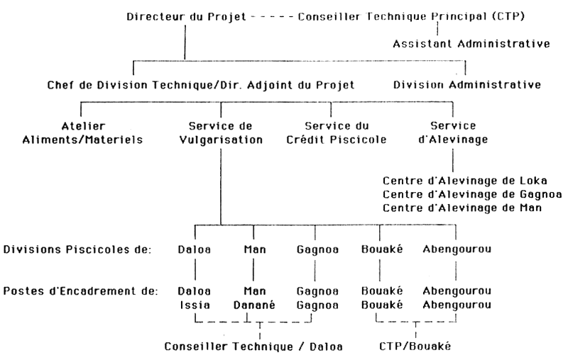 Conseiller Technique Principal (CTP) (1 - Expert FAO) - conseiller technique du Directeur du Projet; chargé du suivi administratif du Projet vis à vis du PNUD et de la FAO; chargé du suivi des activités dans les Divisions de Bouaké et d'Abengourou