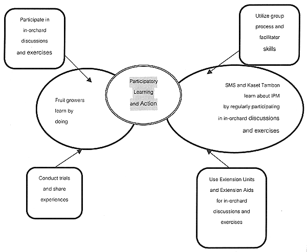 Introducing farmers to IPM practices has proved to be difficult. Conventional extension methods that were classroom-based could not be adapted to the local conditions, allowing only one-way flow of information from extension agents to the farmers. The latter received the same pre-determined advice regardless of the diversity of the agroecological environment and the pest problems.