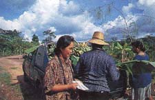 While rice is the major food crop in the project area, diversified farming is promoted on less productive land. For self-sufficiency, farmers are encouraged to turn from monocropping to multiple cropping of varied agricultural commodities. Integrated agriculture means that each piece of land is mapped and planned for rice, fruit trees, vegetables, poultry, and fish ponds, to produce food and earn farm-family incomes.