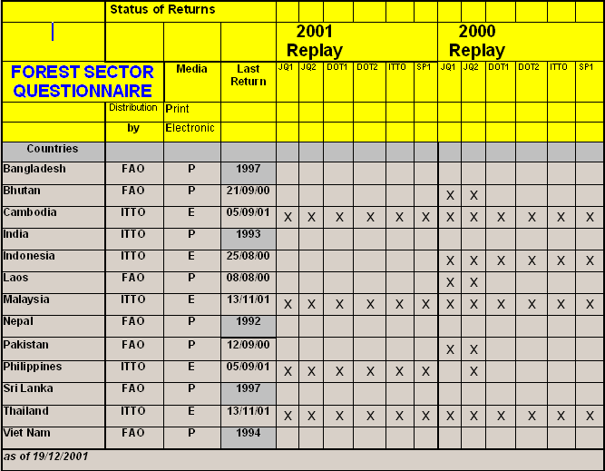 the FAO UN/ECE EUROSTAT Timber Bulletin Questionnaire and the ITTO Forest