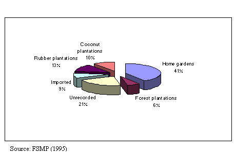 FSMP estimates, home gardens produce 0.95 m2 of sawlogs and 0.5 m2