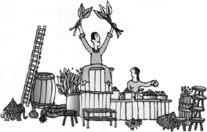 LOCAL TRADER - I purchase the lianas along the roadside. I clean and sort them by quality, store them until the price seems high, bring them to the market and sell them for between $1.25 and $2.00 per 5 piece bunch.