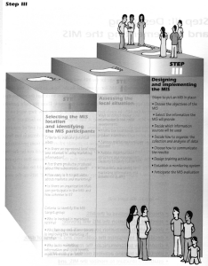 At this point in the design process, a community has all the elements in place for a successful MIS. However, there are still two more systems to be put in place: a mechanism for monitoring the MIS on an ongoing basis and a plan for periodic evaluation of the programme.