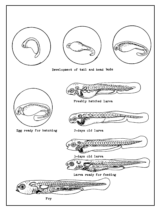 For normal healthy development, the egg needs an adequate temperature to which the fish is adapted in nature. Lower or higher temperatures adversely affect the development process and frustrate the best efforts. Therefore, extreme care is exercised in maintaining optimal water temperature during incubation period.