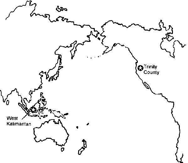 This paper raises questions about the effectiveness of transferring experiences from one place to another. Recent examples of involving communities in fire management in northern California, USA, and West Kalimantan, Indonesia, provide interesting insights (Figure 1). The work in northern California draws mainly on experiences from Trinity County, associated with the efforts of the Trinity County Fire Safe Council, a consortium of local, state, and federal governmental agencies, and non-governmental citizens bodies. The work in West Kalimantan draws largely on work supported by the U.S. National Science Foundation, and in conjunction with a fire research project by the Center for International Forestry Research (CIFOR), the International Centre for Research on Agroforestry (ICRAF), the United Nations Educational, Scientific, and Cultural Organization (UNESCO), the United States Department of Agriculture Forest Service (USFS), the U.S. Agency for International Development, Yayasan Pancur Kasih and Yayasan Dian Tama.