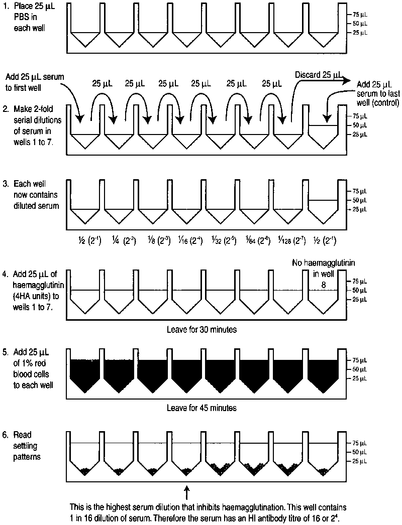 1. Haemagglutination inhibition (HI) test. The HI test is a convenient and commonly used assay that requires cheap reagents and is read by eye.