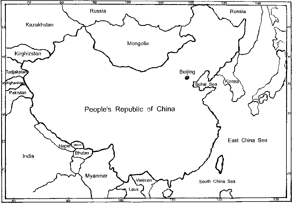 Fig. 1. Location of China in relation to its neighbouring countries.