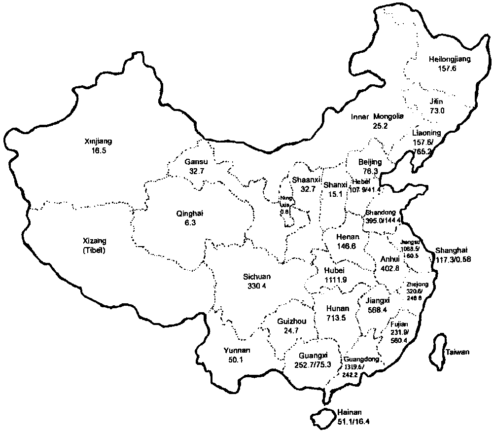 Fig. 5. Provinces of China and their corresponding aquaculture production)